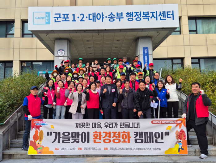 | ▲ 군포시 군포1동은 지난 6일 쾌적한 생활환경 조성을 위한 가을철 대청소와 환경정화 캠페인을 진행했다 /사진제공=군포시 |