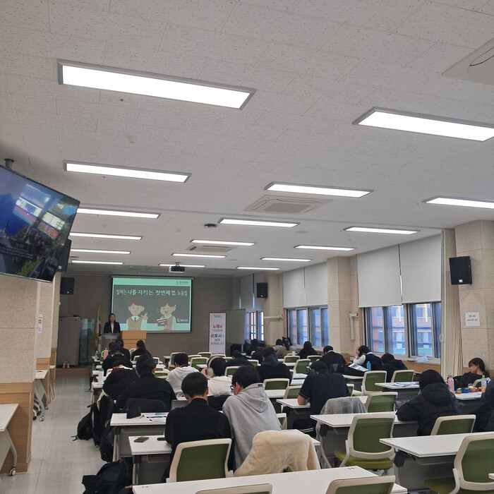 이번 특강은 사회로 진출하는 졸업 예정 학생들을 대상으로 ▲노동의 사회적 가치 ▲직업윤리 의식 ▲기초 노동법 지식 등을 전달해 청소년들의 자율적 노동권리 역량을 강화하기 위해 마련되었다.