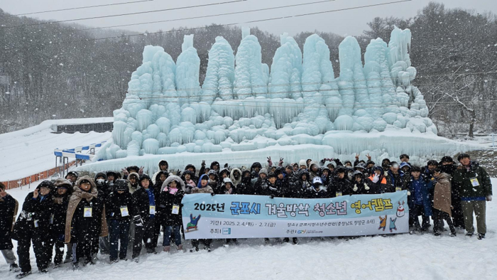 | ▲ 지난해 겨울방학 청소년 영어캠프 참가자들이 기념 촬영을 하고 있다 /사진제공=군포시 |