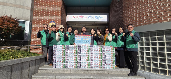 [군포=송윤근 기자] 2025년 11월 10일 오전 11시, 군포시 궁내동 행정복지센터 앞에서 지역 주민들과의 협력 속에 따뜻한 나눔의 손길이 전해졌다. 궁내동 새마을회(새마을부녀회와 새마을지도자협의회)는 관내 어려운 이웃들을 위해 라면 50상자를 후원하며 전달식을 가졌다.