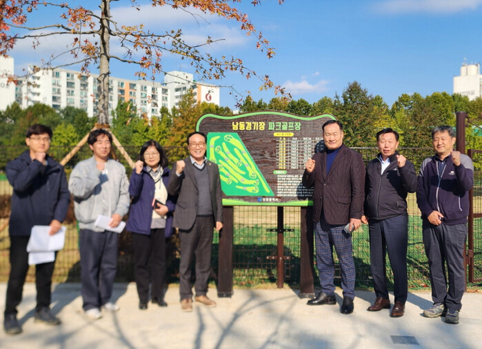 남동파크골프장은 총사업비 17억여 원을 들여 약 6개월간 조성된 천연 잔디 9홀 규모의 시민 생활체육시설로 클럽하우스·휴게 데크·조명·산책로 등 다양한 편의시설을 갖췄다.