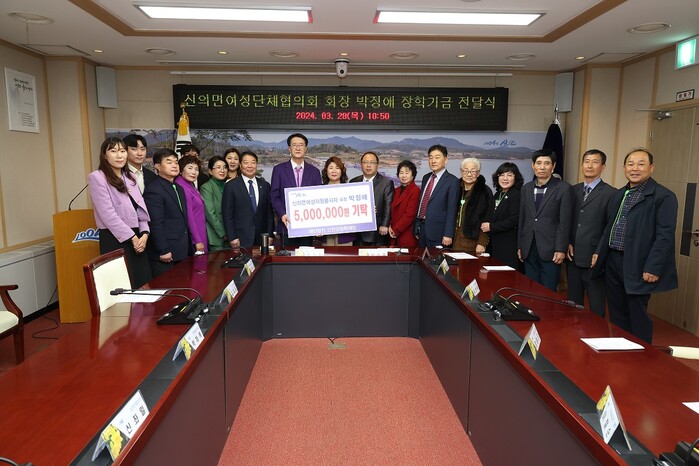 [신안=황승순 기자]신의면여성단체협의회 박정애 회장은 지난 3월 28일 신안군청을 방문해 신안군장학재단(이사장 박우량)에 장학기금 500만 원을 기탁했다.