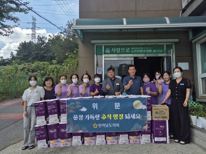 [남악=황승순 기자]전라남도의회 최정훈 의원(더불어민주당, 목포4)이 다가오는 추석 명절을 앞두고 10일 목포시에 소재한 ‘아람그룹홈’과 ‘사랑으로노인전문요양원’을 방문하여 따뜻한 온정을 나눴다.