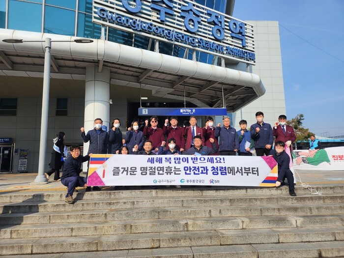 [광주=정찬남 기자] 광주환경공단(이사장 김병수)이 8일 민족 대명절 설을 맞아 광주교통공사, ㈜SR과 함께 광주를 오가는 일반 시민을 대상으로 광주송정역 부근에서 ‘안전ㆍ청렴캠페인’을 실시했다.