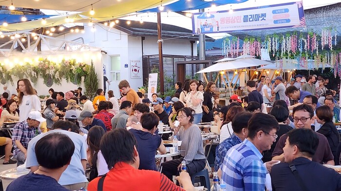 | ▲ 강진군 병영면 소재 불금불파 축제장에서 하멜맥주와 불고기 파티를 즐기고 있는 관광객들 / 강진군 제공 |