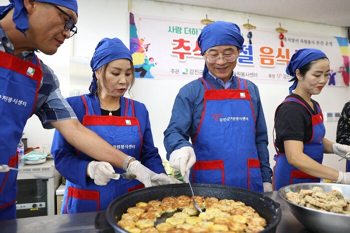 이번 명절음식 나눔 행사에서는 총 100명의 자원봉사자들과 함께 강진원 군수가 참여해, 소 불고기, 전(산적, 동그랑땡), 열무 물김치, 송편 등 다양한 명절 음식을 준비하고 직접 전달하며 추석의 온정을 전했다.