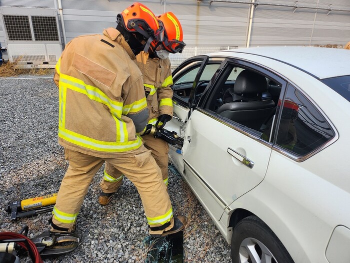 주요 훈련내용은 유압장비, 에어백, 동력절단기 등 구조장비를 활용한 ‘차량 엔진룸 개방’, ‘안전한 작업을 위한 차량 고정 및지지’, ‘차량 유리 파괴’, ‘차량 내 인명구조’ 등이다.