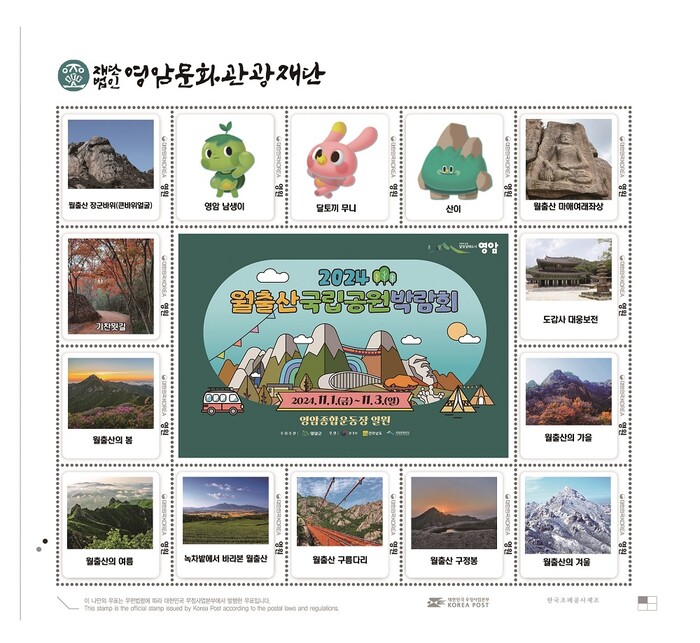 (재)영암문화관광재단이 다음달(11월) 2025년 1월 3일까지 영암군이 개최하는 ‘2024 영암월출산국립공원박람회’를 기념하는 우표를 발행하며 축제 분위기를 달구고 있다.