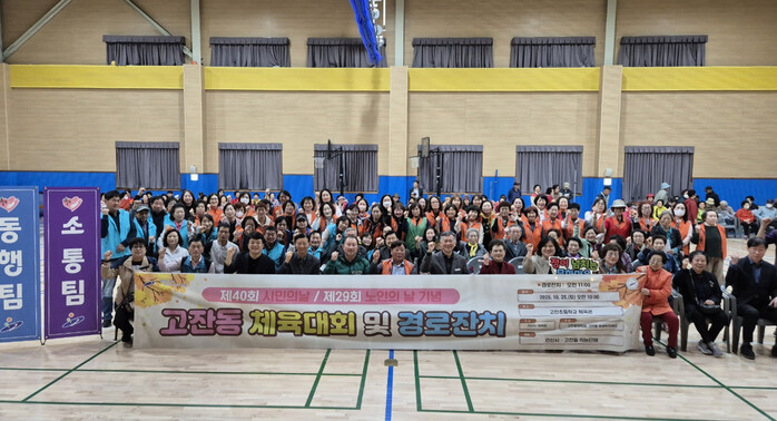 | ▲ 안산시 단원구 고잔동 행정복지센터와 고잔동 체육회는 지난 25일 고잔초등학교 체육관에서 제40회 안산시민의 날 및 제29회 노인의 날 기념 ‘고잔동 체육대회 및 경로잔치’를 개최했다 /사진제공=안산시 |