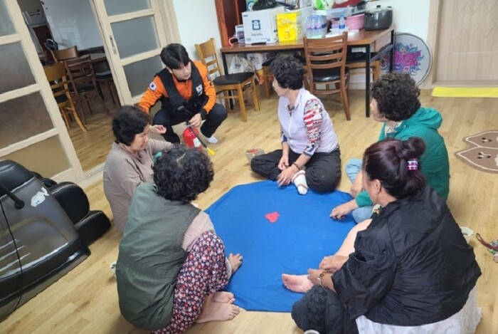 | ▲ 해남소방서 생활안전순찰대, 지난 21일 송지면 어불도 마을회관에서 주민 대상 기초소방시설 점검(소화기, 단독경보형감지기) 및 사용법 등 생활안전서비스 제공 / 해남소방서 제공 |