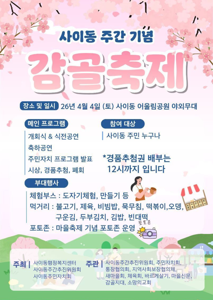 특히, 벚꽃 개화 시기에 맞춰 열리는 감골축제에서는 식전공연을 시작으로 자치센터 작품발표회와 주민노래자랑이 이어지며, 총 18개의 체험부스를 운영해 주민들에게 풍성한 볼거리와 체험 기회를 제공할 계획이다.