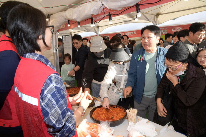 | ▲ 강기정 광주광역시장이 지난 18일 시청 야외음악당에서 열린 제31회 광주김치축제에 참석해 김치마켓 등을 둘러보고 있다. /광주광역시 제공 |