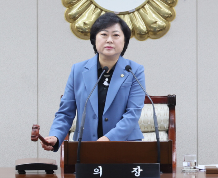 | 안애경 의장이 부평구의회 제274회 임시회 개회를 선언하고 있다. [사진=부평구의회] |