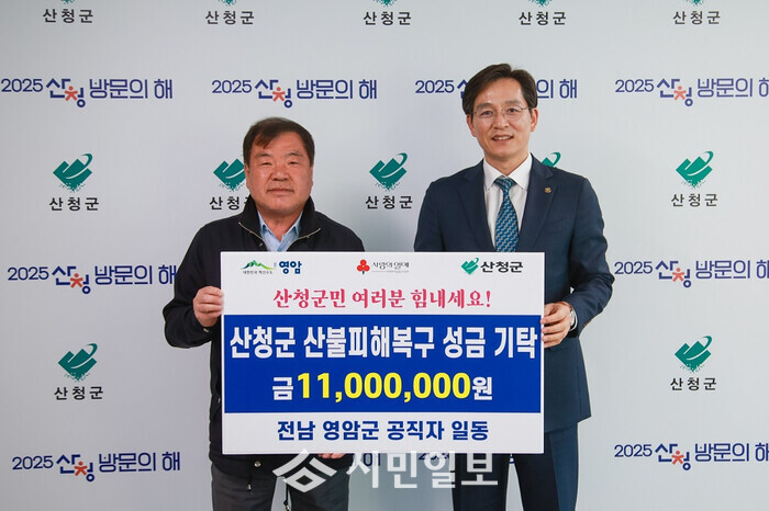 영암군은 성금 전달에 앞서 지난달 28일에는, 산불 진화 인력과 이재민을 보호하는 담요와 등산양말 등 1톤 트럭 1대 분량의 구호물품도 산청군에 보낸 바 있다.