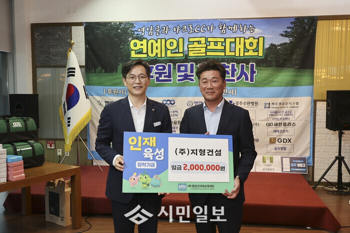 [영암=정찬남 기자] (유)하우젠공조시스템(대표 신철우)과 ㈜지형건설(대표 이정배)이, 8/28일 (재)영암군미래교육재단에 인재육성기금 300만 원과 200만 원을 각각 기부했다.