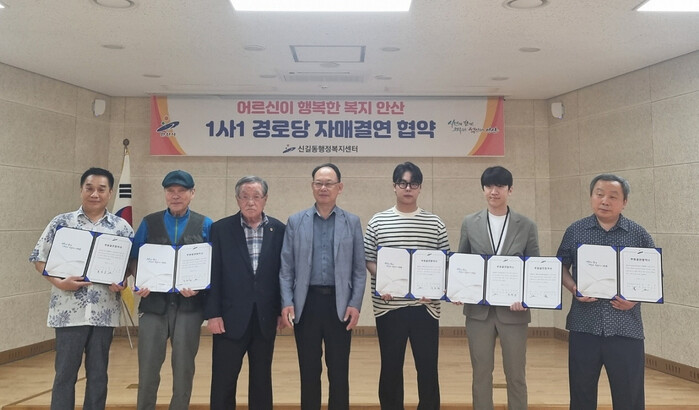 | ▲ 안산시 단원구 신길동 행정복지센터는 지난 16일 ‘플랫폼’과 관내 경로당 3개소가 ‘1사1 경로당 후원 결연 협약’을 체결했다 /사진제공=안산시 |