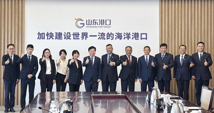 | 인천항만공사 포트 세일즈단이 산둥성항무그룹 리펑리 총경리와 기념촬영을 하고 있다. (사진=인천항만공사) |