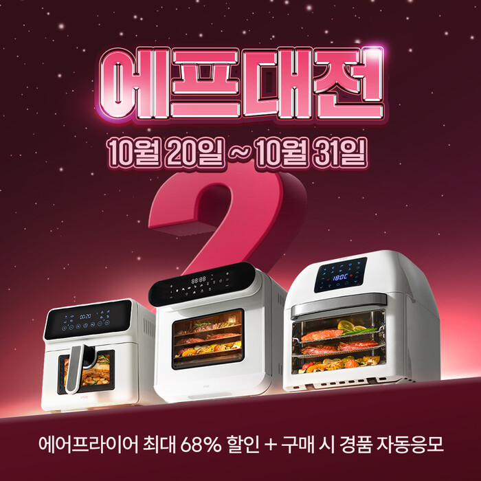 국내 생활가전 브랜드 ㈜아이닉(대표 정건영)이 이달 31일까지 공식몰에서 인기 에어프라이어 4종과 음식물처리기 할인 기획전 ‘에프대전 2차전’을 진행한다.