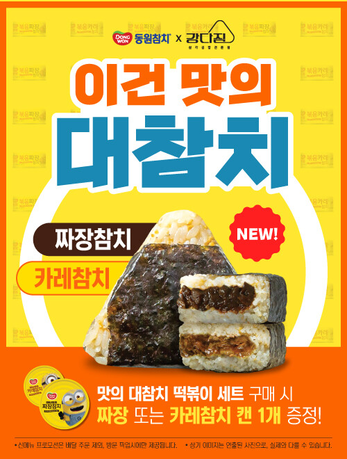 강다짐x동원참치 콜라보 신메뉴 카레참치 삼각김밥, 짜장참치 삼각김밥 2종과 더불어 기존 강다짐 인기 참치 삼각김밥 2종이 추가 구성된 ‘맛의 대참치 세트’와 떡볶이까지 함께 맛볼 수 있는 ‘맛의 대참치 떡볶이 세트’도 출시했다.