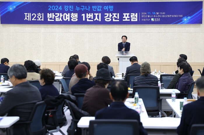 올해 시작과 함께 전남 강진군이 전국 최초로 시행한 ‘누구라도 반값 강진여행’이 군민들의 호응과 관광객들의 방문으로 성과를 나타내고 있다. 이 같은 결과는 각종 경제 지표와 함께 지난 18일 강진군 웰니스 푸소센터에서 열린 제2회 반값여행 1번지 강진 포럼에서 전문가들의 발언과 군민들의 다양한 의견이 쏟아졌다.