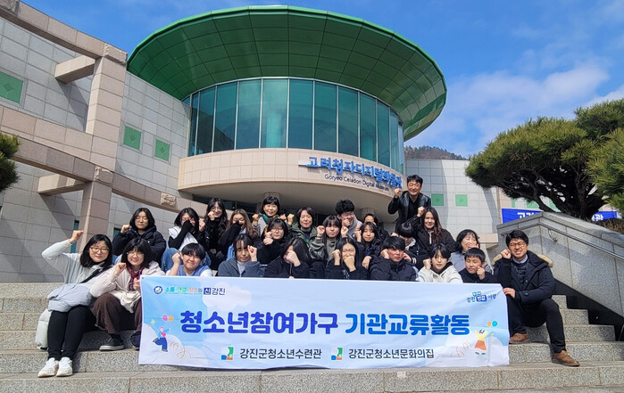 | ▲ 강진군·완도군 청소년참여기구, 지역교류활동 기념촬영 / 강진군 제공 |