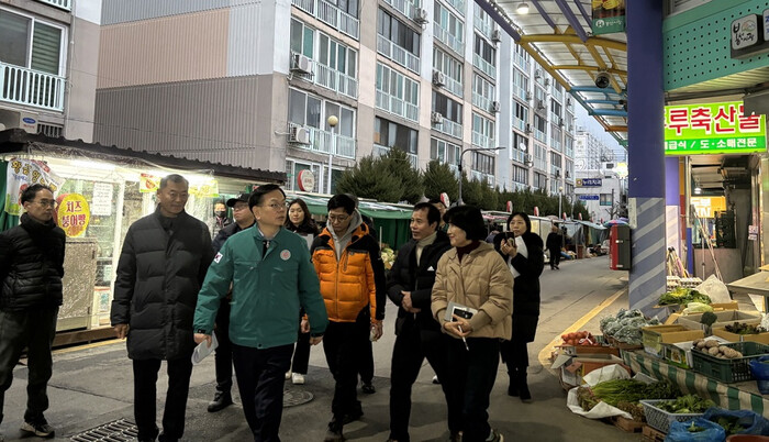 | ▲ 고광완 광주광역시 행정부시장은 지난 8일 남구 봉선시장을 찾아 대설·한파 대비 현장점검을 하고 있다 ./광주광역시 제공 |