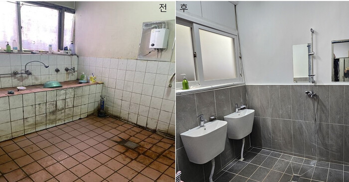 | ▲ 노동자 휴게시설 지원 전후 자료사진 / 광주광역시 제공 |
