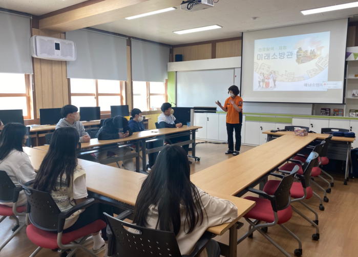 | ▲ 해남소방서, 북평중학교 학생 대상 미래소방관 교육 / 사진=해남소방서 제공 |