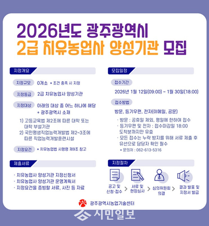 | ▲ 2급 치유농업사 양성기관 모집 포스터 / 광주광역시 제공 |