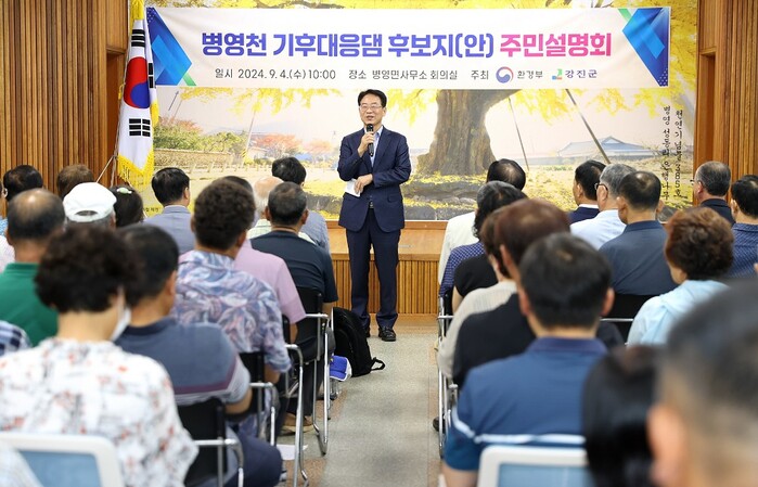 이날 설명회는 환경부 박병언 물관리총괄과장, 곽명안 영산강유역환경청 유역계획과장, 전라남도 박승영 수자원관리과장, 한국수자원공사 본사 한상구 처장 외 관계기관을 비롯해, 강진원 강진군수, 서순선 강진군의회 의장, 주남식 병영면 지로이장 등 총 100여 명 이상의 지역 주민이 참석한 가운데, 기후대응댐의 필요성과 사업 절차 및 보상지원, 질의응답 순으로 진행됐다.