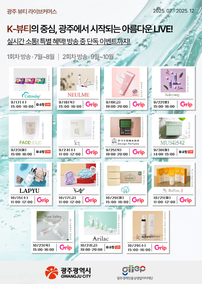 광주시는 이달 17일부터 오는 10월29일까지 총 15회에 걸쳐 지역 뷰티기업들의 라이브커머스 방송을 진행한다.
