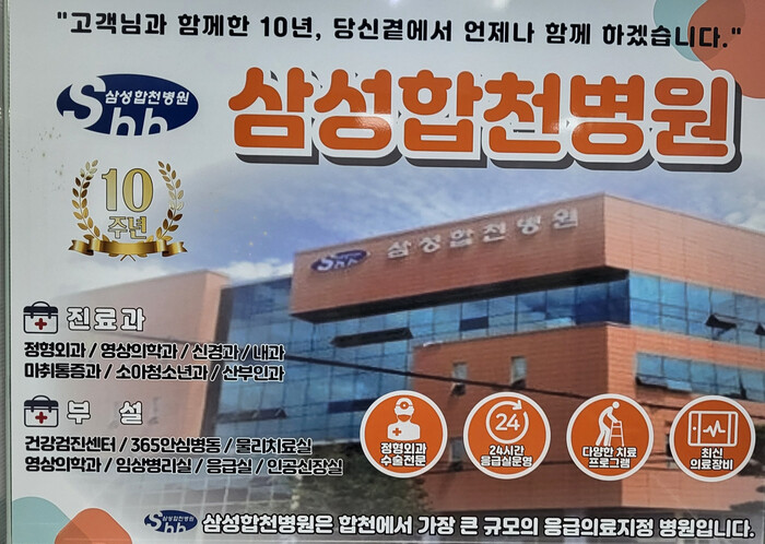 [합천=이영수 기자] 합천읍에 위치한 삼성합천병원(원장 김강훈 정형외과 수부외과전문의)이 합천군의 농촌지역 의료시설 응급지정병원으로서의 제 역할을 다하면서 주민들에게 호평을 받고 있다.