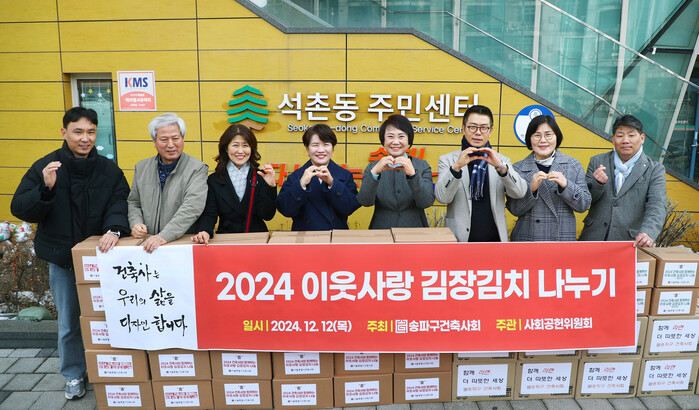 서울시 건축사회에서 주최한 이날 행사에서 송파구건축사회는 김장김치 40박스(배추김치 30박스, 총각김치 10박스) 및 라면 10박스를 석촌동 주민센터에 전달했다.
