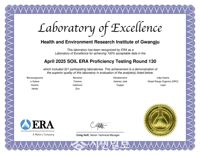 정현철 광주보건환경연구원장은 “8년 연속 국제인증 획득은 연구원의 지속적인 분석 능력 강화와 품질관리 체계 운영의 결과”라며 “앞으로도 과학적이고 신뢰도 높은 환경분석으로 시민 건강 보호와 환경 정책의 기반 마련에 기여하겠다”고 말했다.