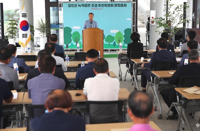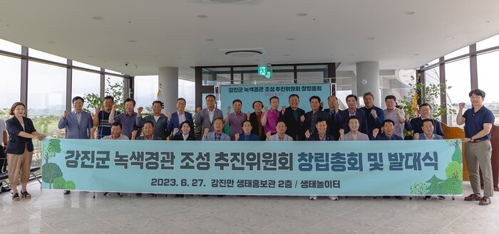 [강진=정찬남 기자] 전남 강진군은 지난 27일, 강진만생태공원에서, 강진원 군수와 관계자 50여 명이 참여한 가운데 ‘강진군 녹색경관 조성 추진위원회 창립총회 및 발대식’을 개최했다.