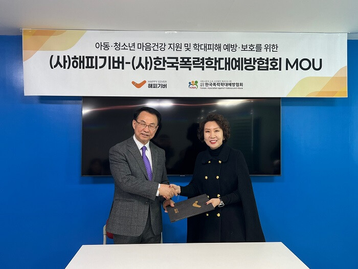 아동·청소년을 위한 심리·정서 지원 서비스 제공과 학대피해 예방 및 보호 활동을 통해 아동·청소년이 건강하게 성장할 수 있는 환경을 조성하는 것을 목표로 하는 이번 협약에는 해피기버 권태일 이사장, KAVA 이희엽 이사장 등 관계자들이 참석했다. 협약을 통해 양 기관이 가진 전문성과 자원을 활용하여 체계적이고 지속적인 지원을 이어갈 예정이다.