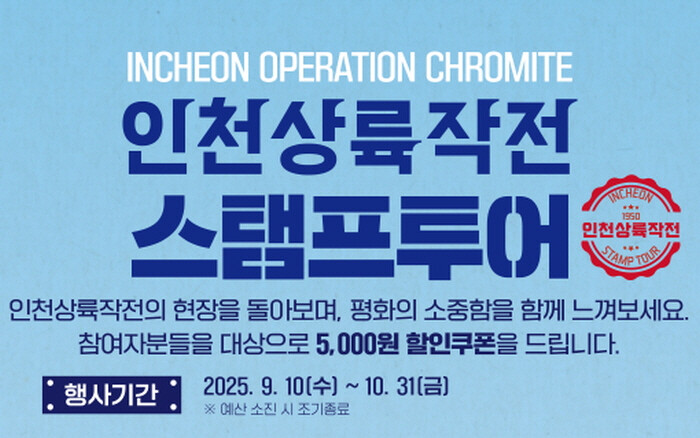 인천관광공사에 따르면 올해 스탬프투어는 제75주년 인천상륙작전 기념 주간과 연계, 3개 코스로 확대됐다. 특히 덕적도·영흥도·팔미도 등 전초기지 섬 코스가 추가돼 상륙지점과 기념관을 넘어 해양과 섬까지 체험 범위를 넓혔다.