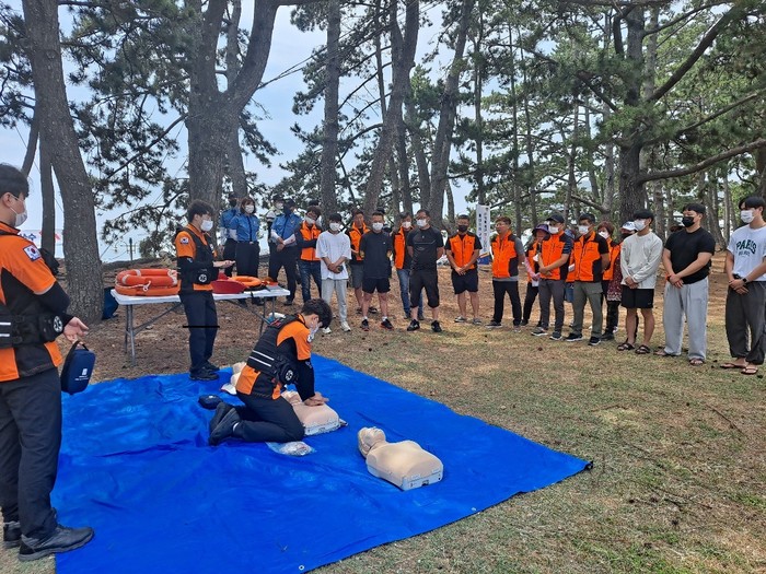 119수상구조대원 12명, 민간수상구조대 10명, 자원봉사자 10명, 해경 2명 등 총 34명이 참가한 이번훈련은 응급상황에 대비한 인명구조훈련과 응급처치 집중 훈련으로 진행됐다.