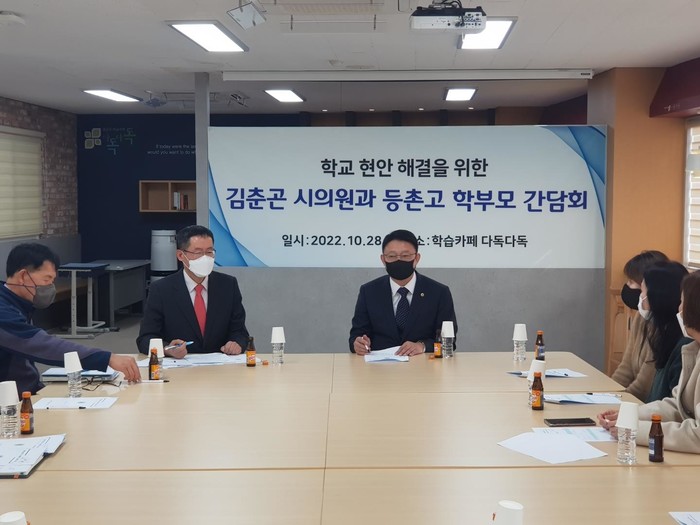 이날 간담회는 학교 교육환경을 살피고 건의사항을 청취하기 위해 마련된 것으로 김 의원과 교장, 교감 등 학교 관계자와 학부모들이 참석한 가운데 진행됐다.