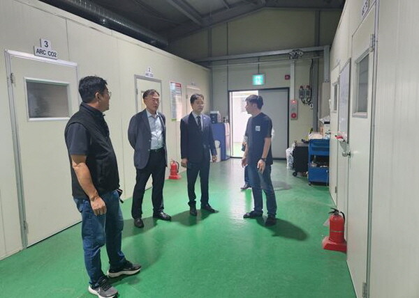 | 장덕수 의원과 관계자들이 법무보호복지공단 보호관찰 대상자 기술교육원을 둘러 보고 있다. |
