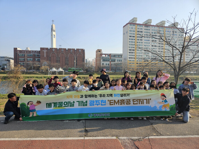 이날 ‘깨끗한 광주천 만들기’ 활동의 일환으로, 광주 지역 아동센터 초등학생 50여 명이 참여하여 EM 흙공을 직접 만들고 광주천에 던지는 등 수질 개선과 환경 보호의 의미를 몸소 실천했다. EM흙공은 유용미생물(EM)과 흙으로 이루어진 친환경 소재로, 하천 바닥의 오염물질을 제거하고 악취를 저감하는 효과가 있다.