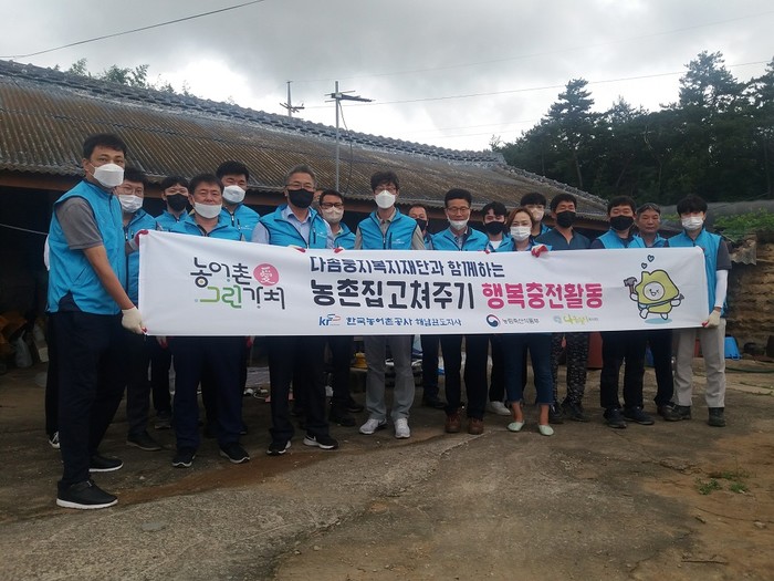 [해남=정찬남 기자] 한국농어촌공사 해남·완도지사(지사장 김재식)직원 20여 명이 지난 8월 31일 해남군 황산면 우항길 변** 기초생활수급자 독거노인 가구를 찾아 “농촌 집 고쳐주기” 사회공헌 활동을 펼쳤다.