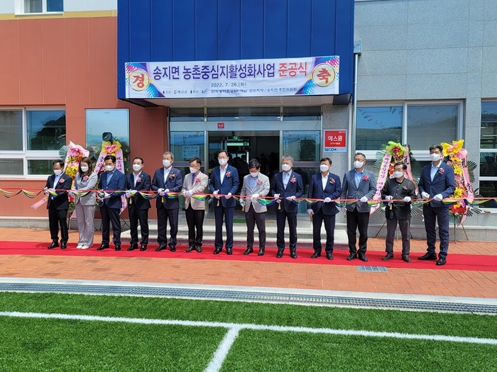 [해남=정찬남 기자] 한국농어촌공사 해남·완도지사(지사장 김재식)는 농촌중심지활성화사업 추진위원회와‘희망송지 복합문화센터’ 준공식을 지난 26일 개최했다.