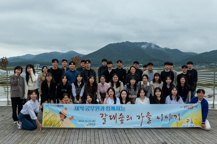 | ▲ 강진군, 지난 22일, 강진만 생태공원에서 2024년도 임용된 신규 공직자 대상 '갈대숲 가을 이야기' 특별 이벤트 동행 기념촬영 / 강진군 제공 |