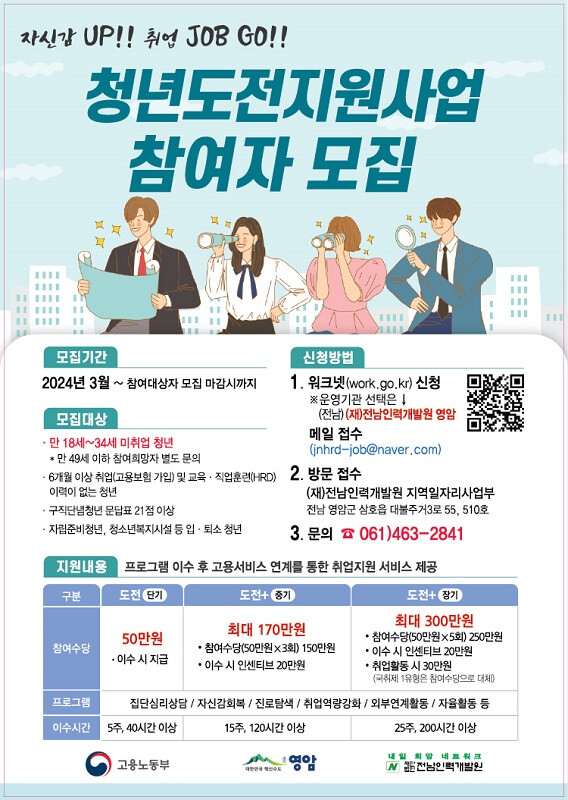 김동식 영암군 일자리경제과장은 “지역 청년들의 꿈과 도전을 응원하는 영암 청년도전 지원사업으로 더 많은 청년들에게 기회의 장을 열어주겠다”고 말했다.