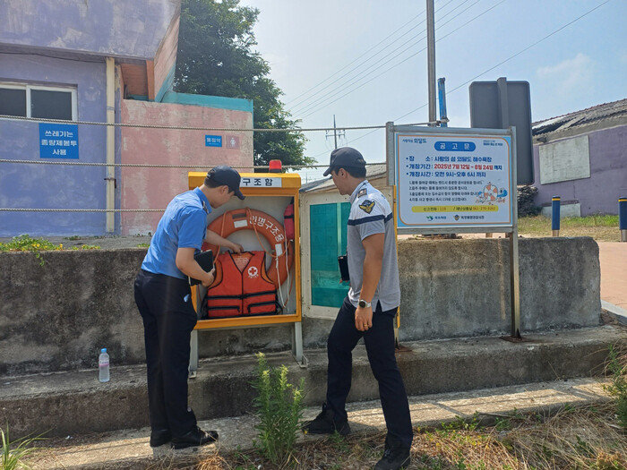| ▲ 목포해경이 해수욕장 인명구조함을 점검하고 있다(출처=목포해양경찰서) |