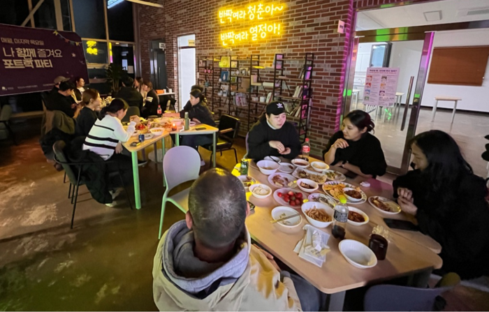 | ▲ 강진군 강진읍 청년숍에서 포트럭 파티를 즐기고 있는 청년들./ 강진군 제공 |