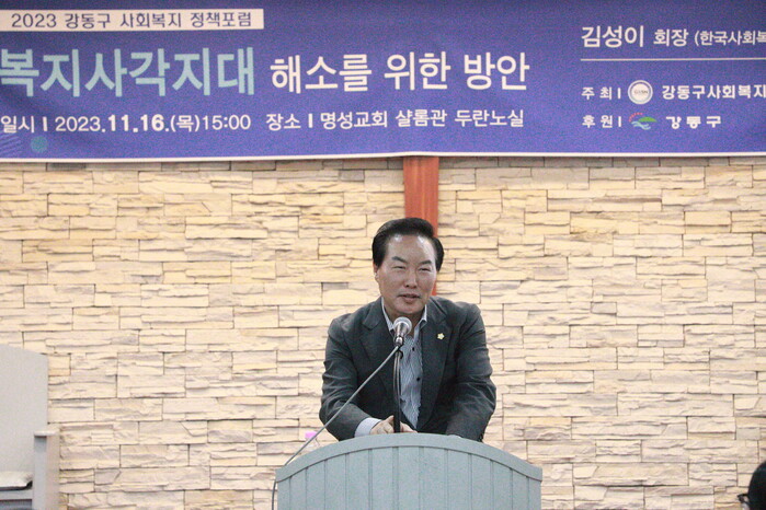 이번 2023년 강동구 사회복지 정책 포럼은 강동구사회복지협의회(회장 김성태) 회원 및 사회복지 관계자, 지역주민 등 150여 명이 모여 「복지 사각지대의 해소방안」를 주제로 더 나은 강동구를 만들기 위해 토론하고 고민하는 시간을 가졌다.