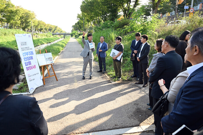 이 시장은 이어 주민들과 함께 화정천을 찾아 산책로 정비와 휴게공간 조성 필요성을 확인하고 관계 공무원들과 개선 방안을 논의하는 시간을 가졌다.