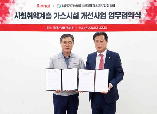 대한기계설비건설협회 가스공사업협의회 김영태 회장은 “이번 협약은 협회의 전문성과 린나이의 기술력이 결합해 전국 취약계층의 가스시설 안전을 강화하고 개선하는 실질적인 활동으로 이어질 것”이라고 강조했다.